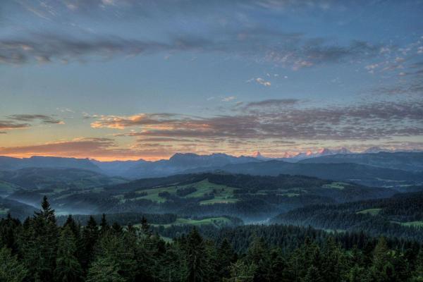 Diese Wanderung startet ebenfalls direkt beim Schloss Hünigen über Freimettigen und durch den Wald zum höchsten Punkt der Tour, dem sogenannten „Güggu“. Geniessen Sie den Ausblick und laufen Sie über einen Waldweg zurück zum Schloss.